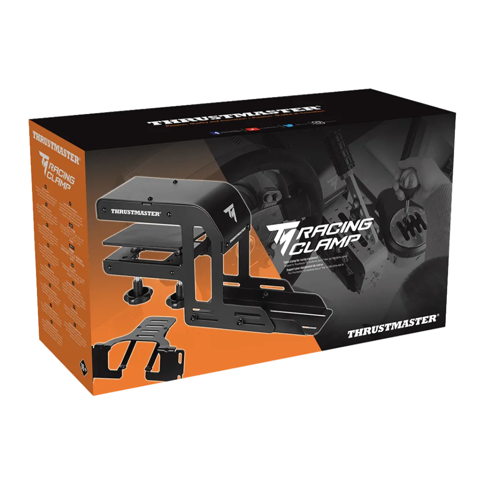 תושבת מירוץ Thrustmaster היא פתרון אידיאלי להצבת בלם היד TSS ומעביר ההילוכים TH8A לשולחנות בעובי 15-50 מ"מ, ללא צורך בתא טיס ייעודי.