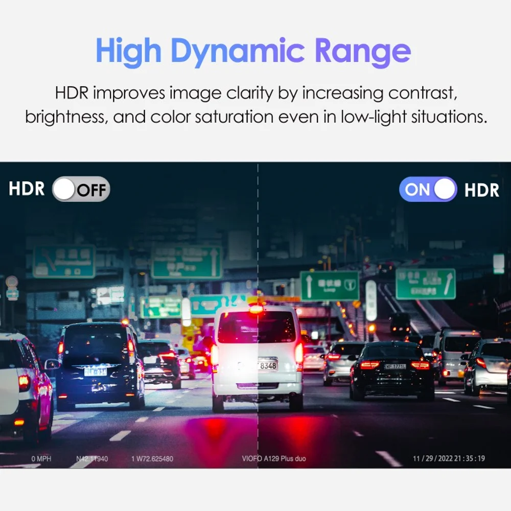 מצלמת הדרך VIOFO A129 PLUS DUO עם GPS מציעה לכם צילום ברזולוציה 2K הן מלפנים והן מאחור, יחד עם קישוריות Wi-Fi נוחה למעקב ותחזוקה.